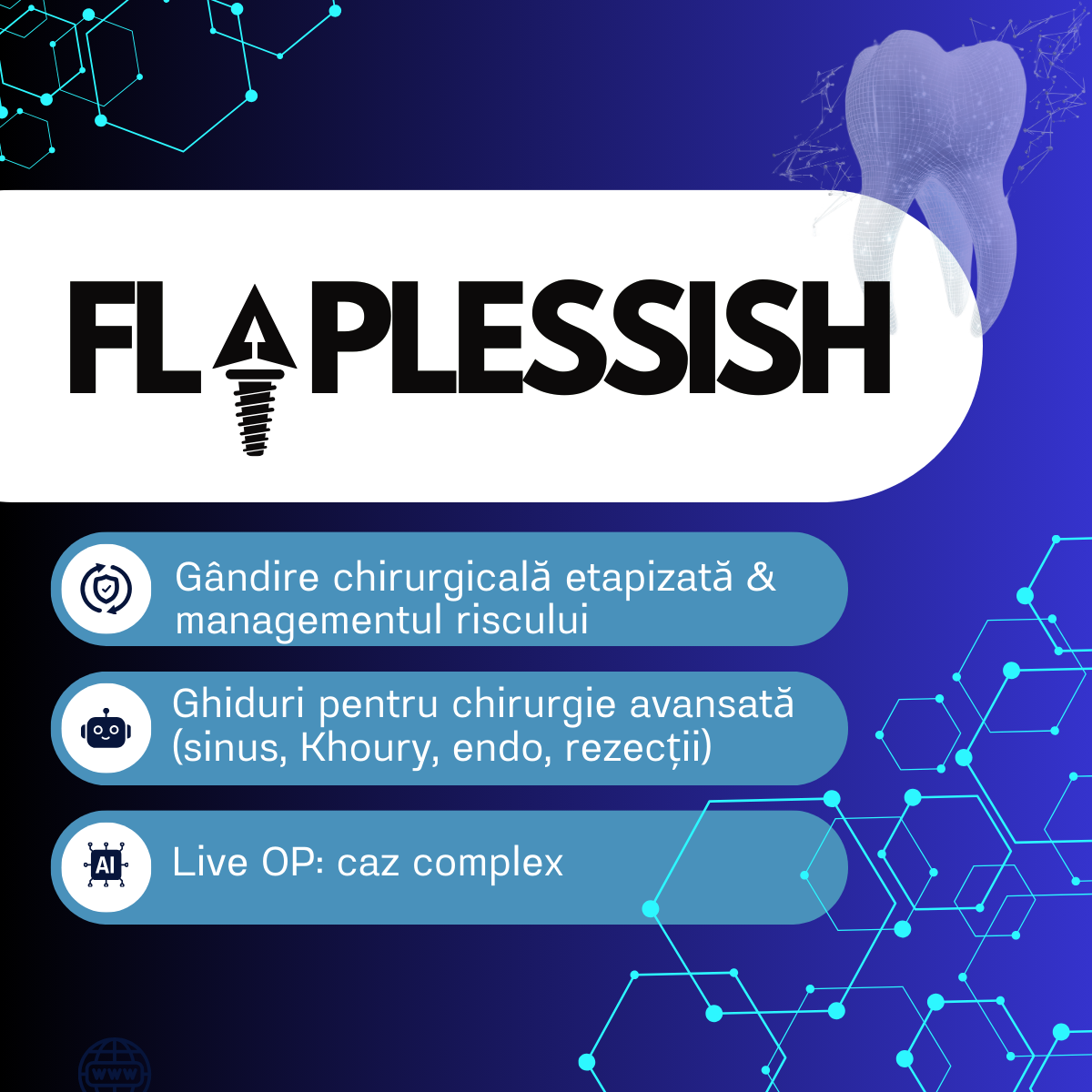 FLAPLESS a apărut ca răspuns la această realitate din practică. Nu ca un curs de software și nici ca o colecție de cazuri frumoase, ci ca un sistem clinic coerent, în care fiecare etapă are criterii clare: ce verifici, ce decizi și de ce mergi mai departe.